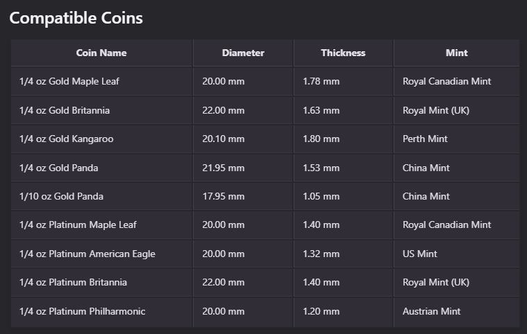 ✅Perfect for 1/4 oz gold coins (Gold Eagles, Britannias, Krugerrands)