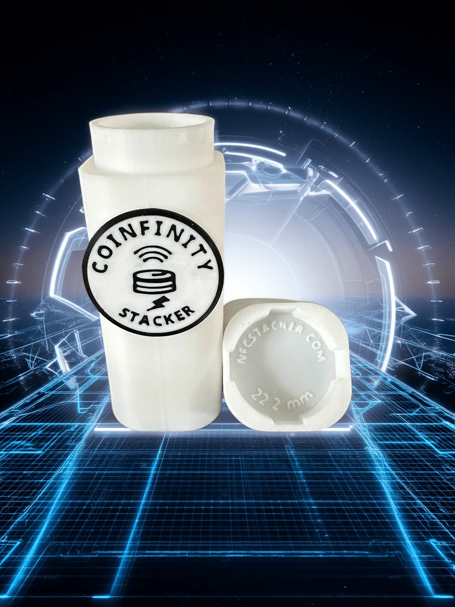 Each stacker includes a 25mm NFC tag embedded in the tube or badge, enabling fast tap-to-scan functionality with the COINFINITY App, available on iOS and Android. Manage your coin data, assign notes, or log purchase history—all with a single tap.