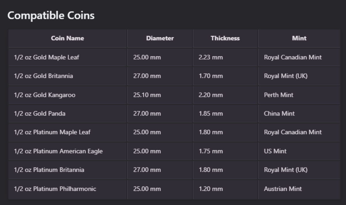 ✅ Designed for 27.4mm coins (verify coin diameter before ordering)